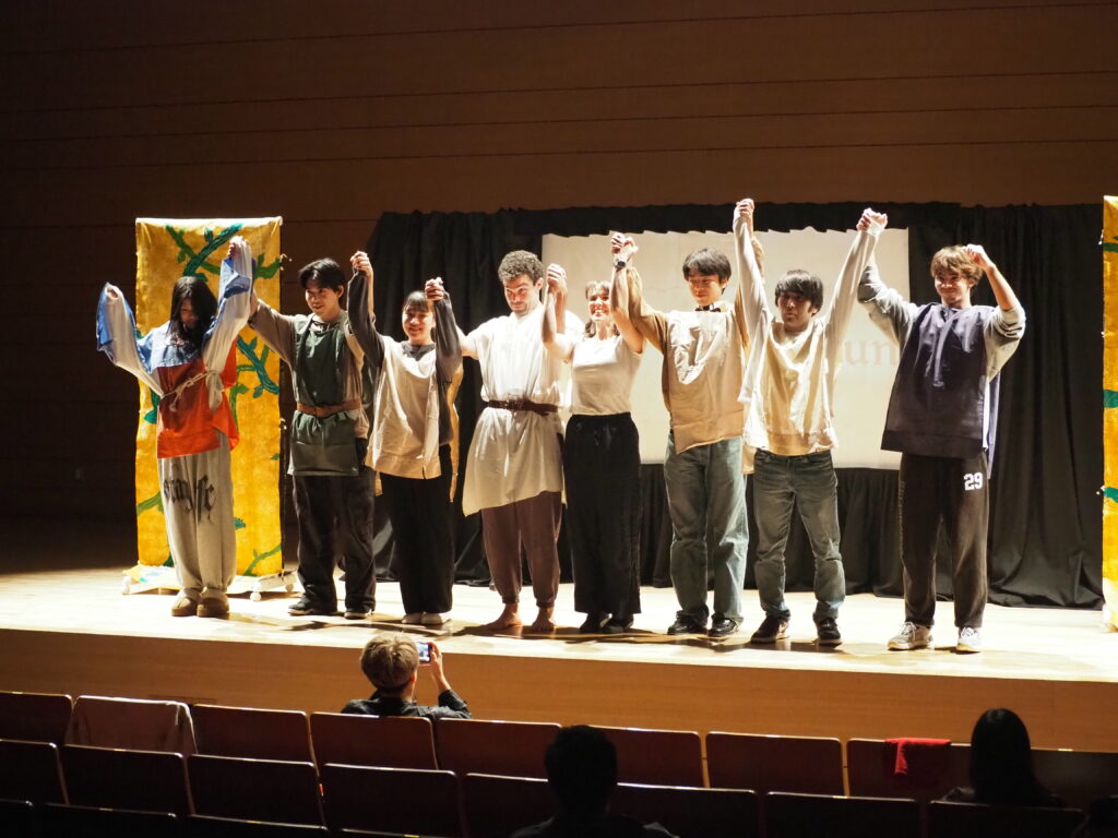 観客たちは、本場の役者たちの聞き取りやすい英語と迫真の演技に自然と引き込まれ、メロスの困難に満ちた旅を見守りました。また、学生たちの演技に、会場は大きな笑いに包まれました。
